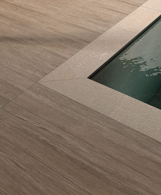 Колекція плитки Essence виражає красу дерева з надзвичайною простотою, перетворює кімнати на місця чистої елегантності.
