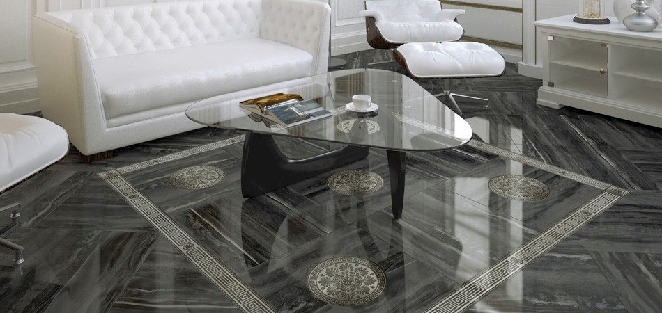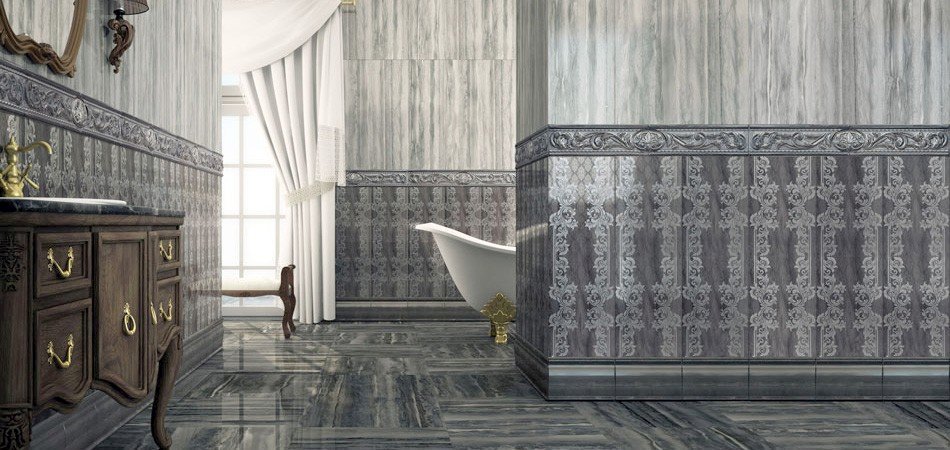 Плитка Bellagio имитирует поверхность натурального камня, а именно черного мрамора. Коллекция представлена двумя основными цветами – Dark и Silver.