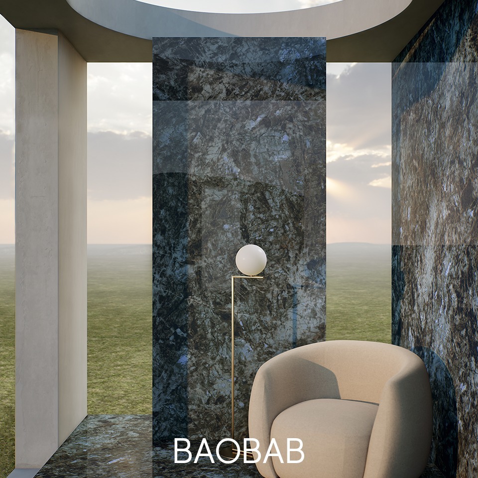 Колекція містить великоформатну плитку, яка складається у суцільний малюнок з чотирьох плит