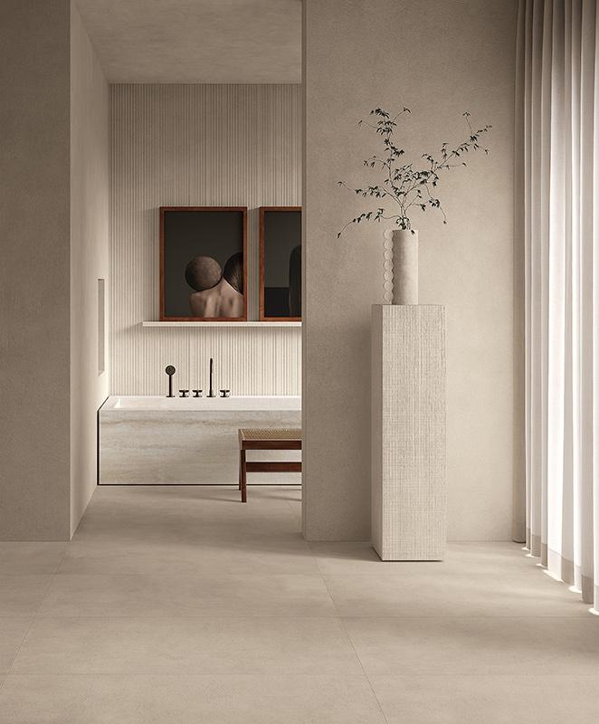 MATERIA поєднує 9 відтінків Gesso, Cemento, Sandalo, Seta, Cenere, Tortora, Pesca, Oliva, Incenso у товщині 6мм, 9мм, 20мм та у форматах 120*280, 120*120, 60*120, 80*80, 60*60