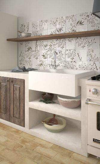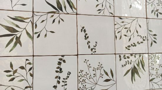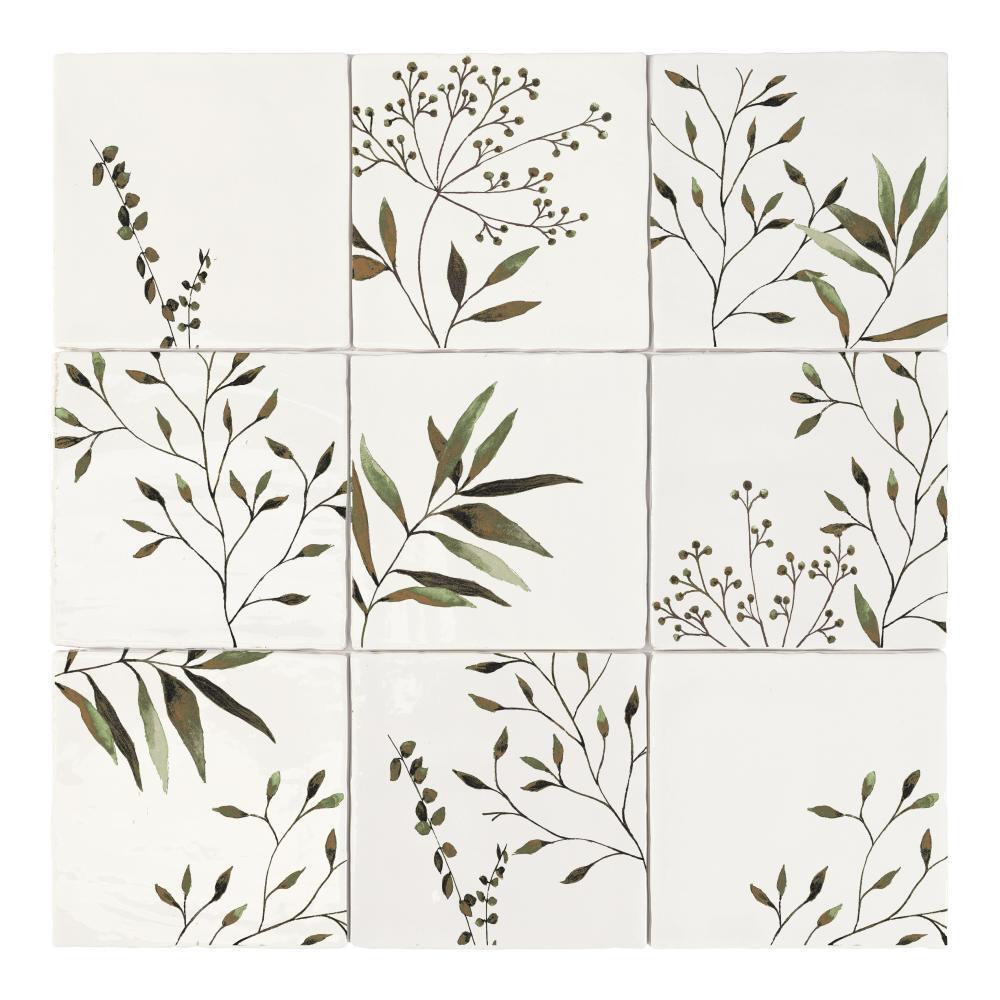 Керамічна настінна плитка формату 15x15 см, що відображає свіжість і безтурботність Середземномор'я, з дизайном, натхненним оливковими гілками та ароматними травами.