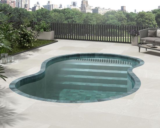 Керамічна плитка синього відтінку з заокругленими краями. Розроблена для ідеального оздоблення сходів та бортиків басейнів завдяки заокругленим краям та антислизькому покриттю класу 3. Її красиве покриття створює візуальний ефект у воді.