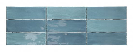 Настінна керамічна плитка в середземноморському стилі, формату 7,5х23 см, бірюзових тонів, всього 9 штук, з різним рельєфом і сильними відтінками глянцевого покриття.