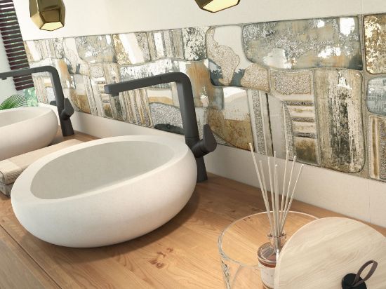 Раковина з натурального каменю авангардистського стилю. Асиметрична і з чистими лініями, бездоганно поєднується з новою серією ARENA 30 × 90.