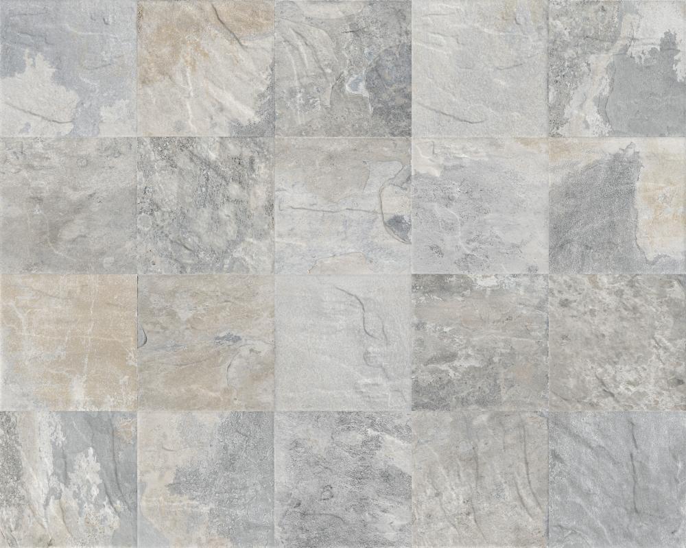 Керамограніт із кольоровою палітрою від білого до темно-сірого, включаючи відтінки сірого та бежевого, що відтворює природні відтінки кварциту надає елегантного та візуально ефектний естетичний вигляд. Він підходить для підлог як у внутрішніх, так і в зовнішніх приміщеннях, гарантуючи безпеку, унікальність та вишуканість.
