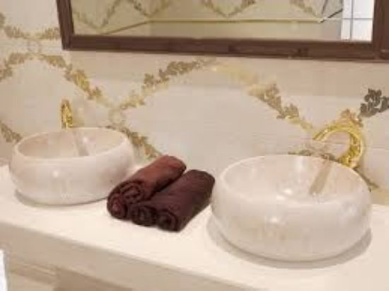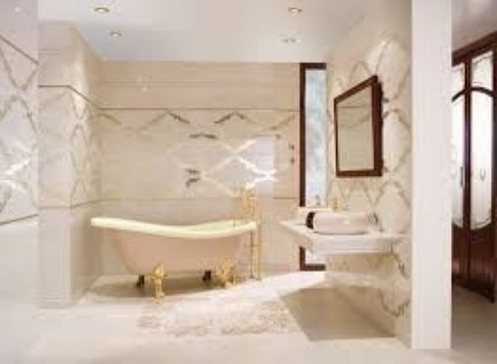 Класичний декор на бежевій плиті, що стане окрасою ванної кімнати