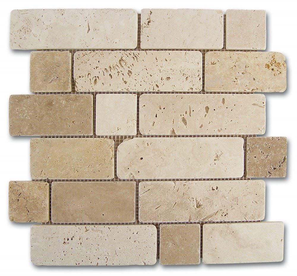Кам'яна мозаїка з геометричними формами, що поєднує квадрати і прямокутники, в різних відтінках світло-бежевого кольору.