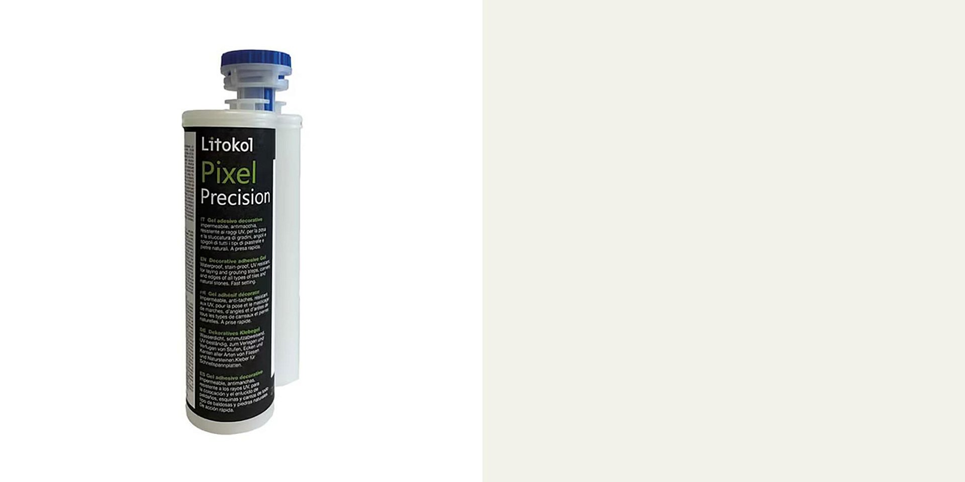 Готовий до використання двокомпонентний декоративний клейовий гель у картриджі для створення кутів, країв та сходинок, а також для швидкого та довговічного склеювання різноманітних матеріалів, таких як керамограніт, мармур, натуральний камінь, граніт, кварц тощо. Гель оптимізований для надзвичайно високої адгезії в суворих умовах з високою прохідністю та на технічних поверхнях.