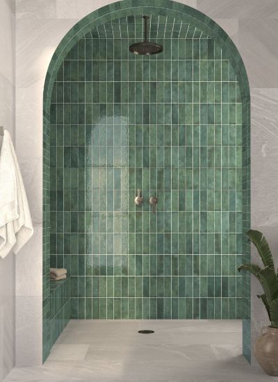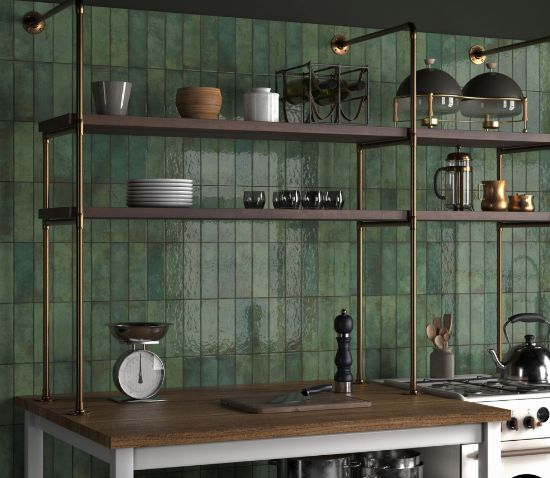 Керамічна настінна плитка невеликого формату 6,5×20 см, що відрізняється глибоким зеленим відтінком, глянцевим скляним покриттям і міцністю матеріалу. Цей колір асоціюється з природою та майстерністю, надаючи спокою, елегантності та багатства кольорів приміщенням, які потребують виразної керамічної ідентичності.