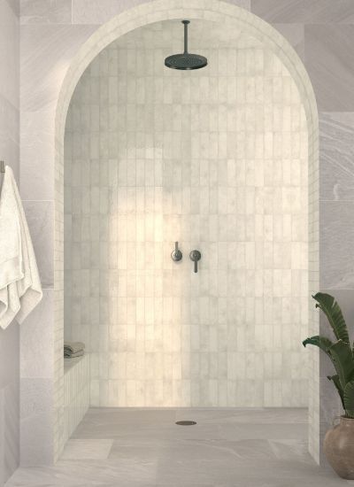 Керамічна настінна плитка формату 6.5×20 см, що відрізняється ремісничою текстурою, нерівними краями та ретельно виготовленою глянцевою глазур'ю. Її теплий білий відтінок передає легкість і чистоту, підкреслюючи багатство відблисків і виразність рельєфу. Ідеальний варіант для світлих, спокійних композицій.