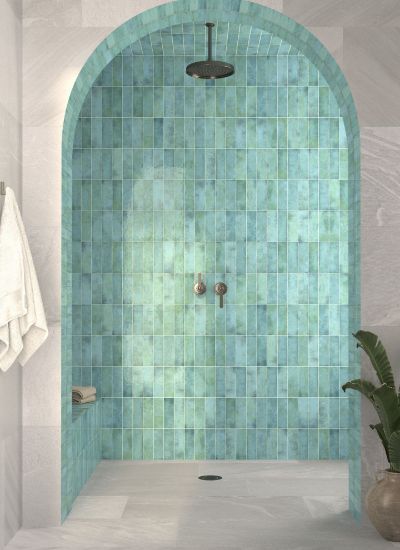 Ця керамічна настінна плитка формату 6,5×20 см вирізняється красивою глянцевою глазур'ю, багатим графічним розмаїттям і сильною варіацією відтінків — ідеально підходить для створення поверхонь, сповнених руху та виразності. У бірюзовому тоні ця плитка виглядає свіжою та декоративною, здатна підкреслити гру світла та додати динамічності, не втрачаючи своєї автентичної керамічної сутності.