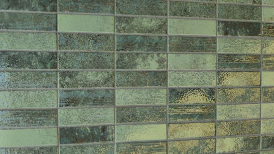 Керамограніт 14,7×14,7см поділений на три візуально, кожен шматок має текстуру, натхненну піском, кварцом та каменем