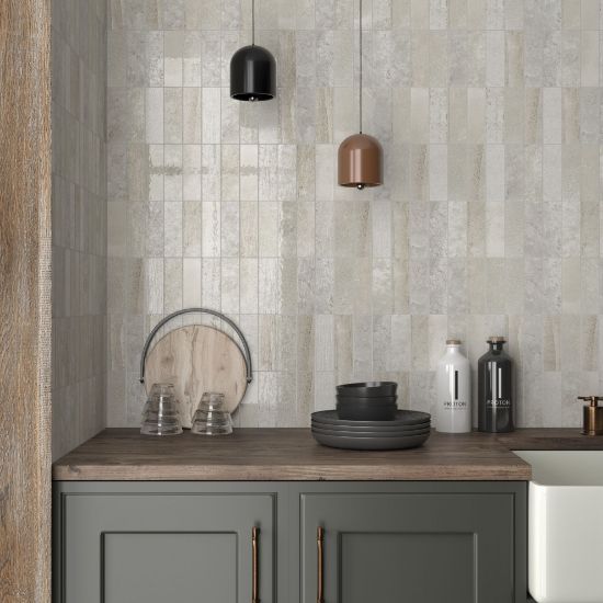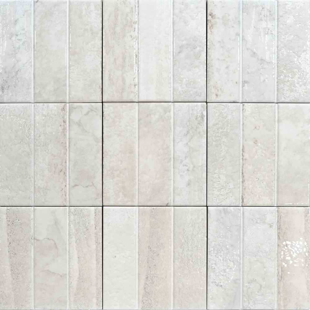 Керамічна плитка формату 14,7×14,7 см з дизайном, що створює візуальний ефект трьох плиток розміром 5×15 см. Цей відтінок білого кольору з бежевими нюансами є чітким, нейтральним і мінеральним, здатним підкреслити тонкі текстури та додати яскравості. Ідеально підходить для створення спокійних, сучасних просторів із збалансованою атмосферою.
