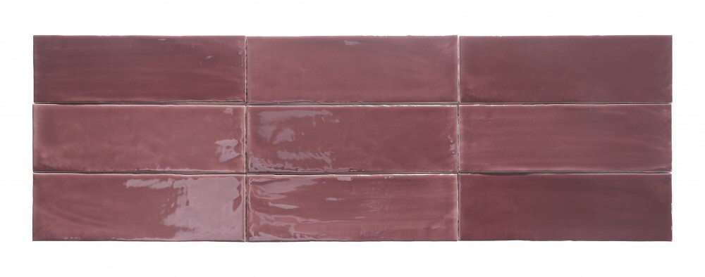 Настінна керамічна плитка в середземноморському стилі, формату 15х15 см, у свіжих бордових тонах, загалом 9 штук, з різним рельєфом і сильними відтінками глянцевого покриття.