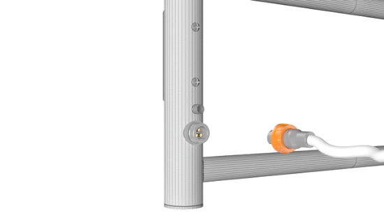 Конектор: Замість звичного шнура з фіксатором в конструкції вироби присутні роз'єми, що дозволяють підключити полотенцесушитель до мережі з будь-якого боку. Місце з'єднання захищено за сертифікатом IP44 і безпечно в повсякденному використанні.