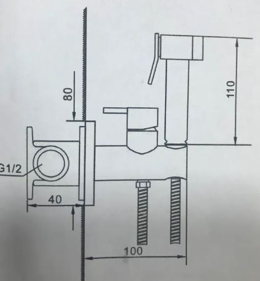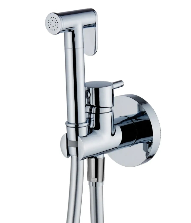Одноважільний змішувач для гігієнічного душу з підключенням шланку і фіксацією лійки на одному корпусі.
